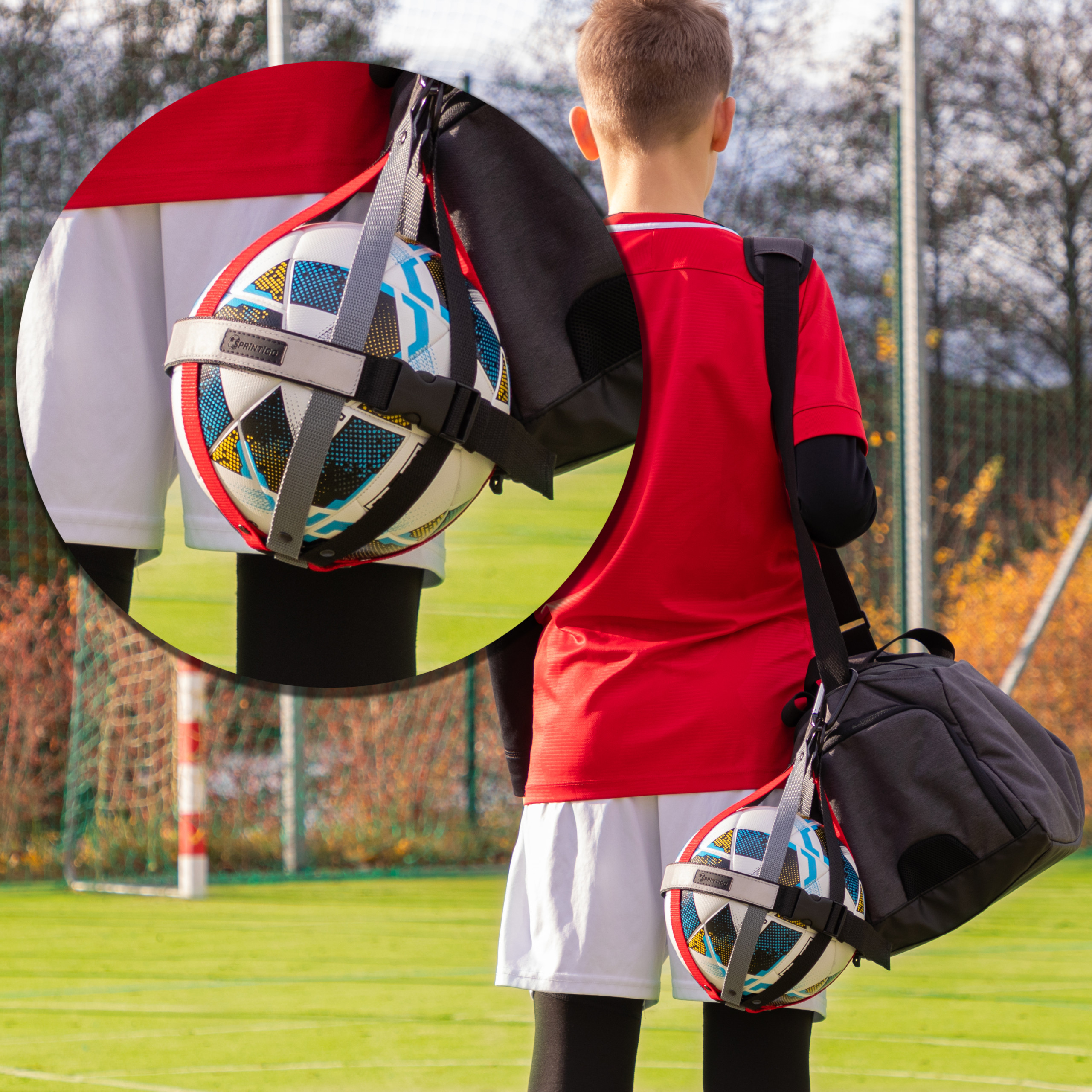 Uchwyt na piłkę Sprintigo - czerwony x szary x czarny - torba na piłkę