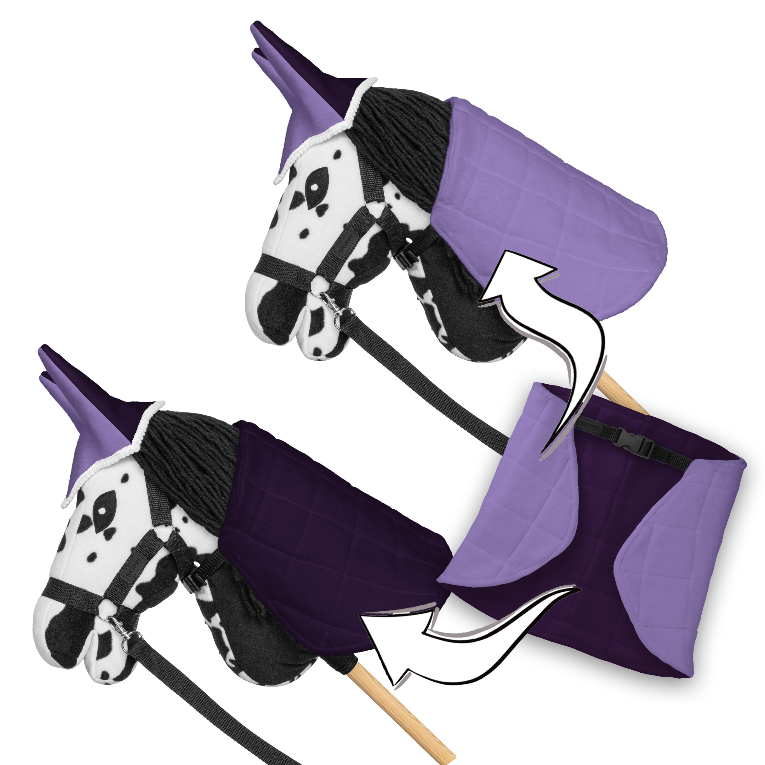 Zestaw Skippi - Hobby Horse Karo - srokaty - Derka wrzos - Kantar błękitny